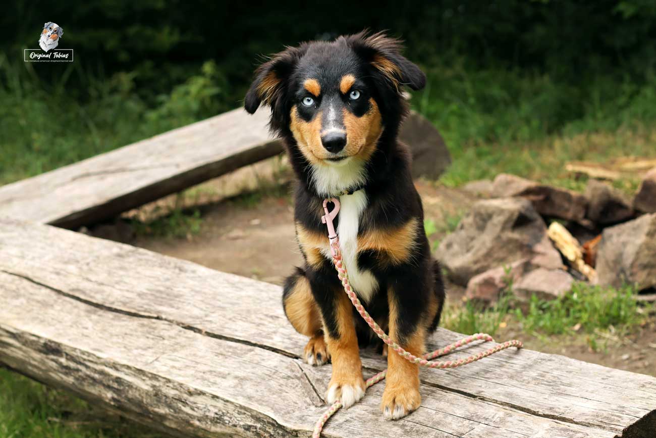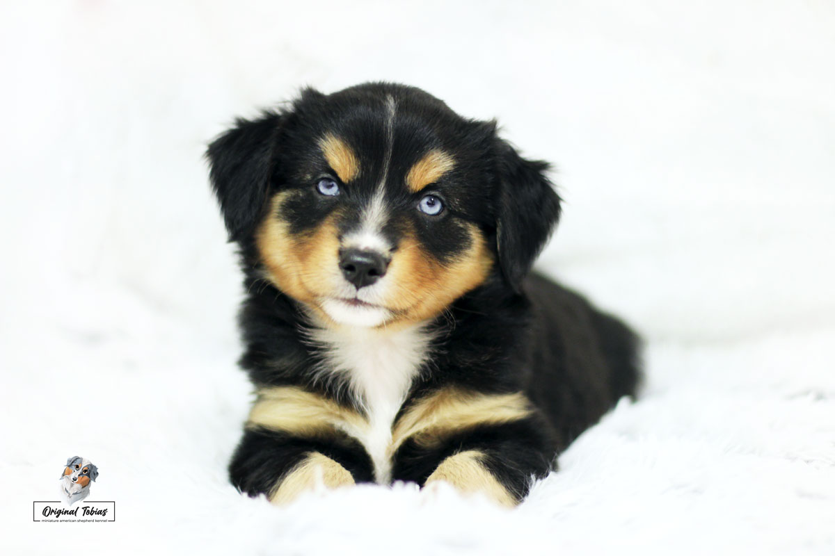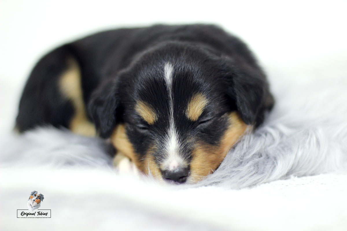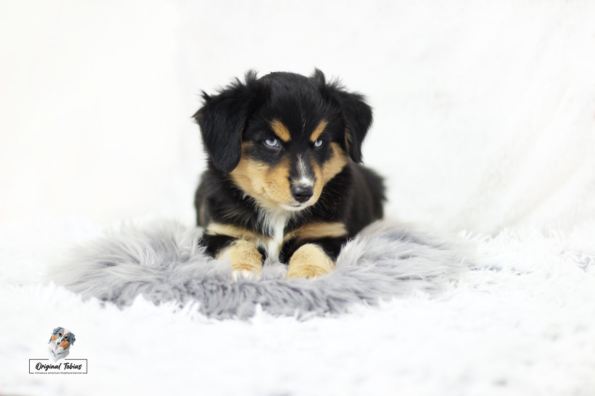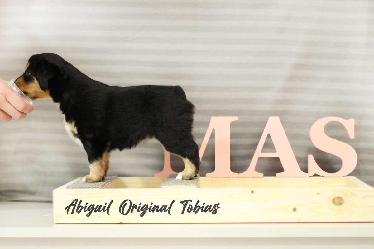 Abigail Original Tobias je black tri fenka, které jsme přiřadili fialovou barvičku. Abigail se narodila jako předposlední štěně s váhou 320 g, v čase 15:50 dne 16. 2. 2021.