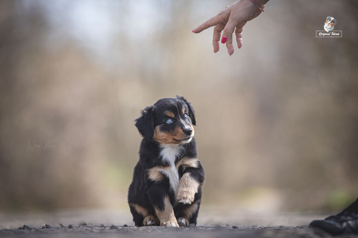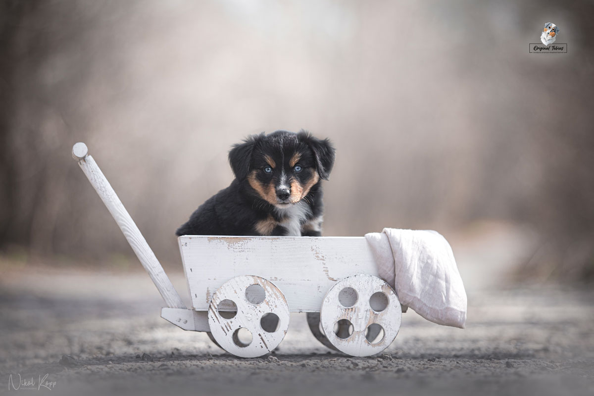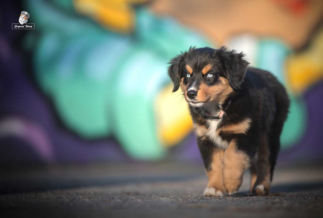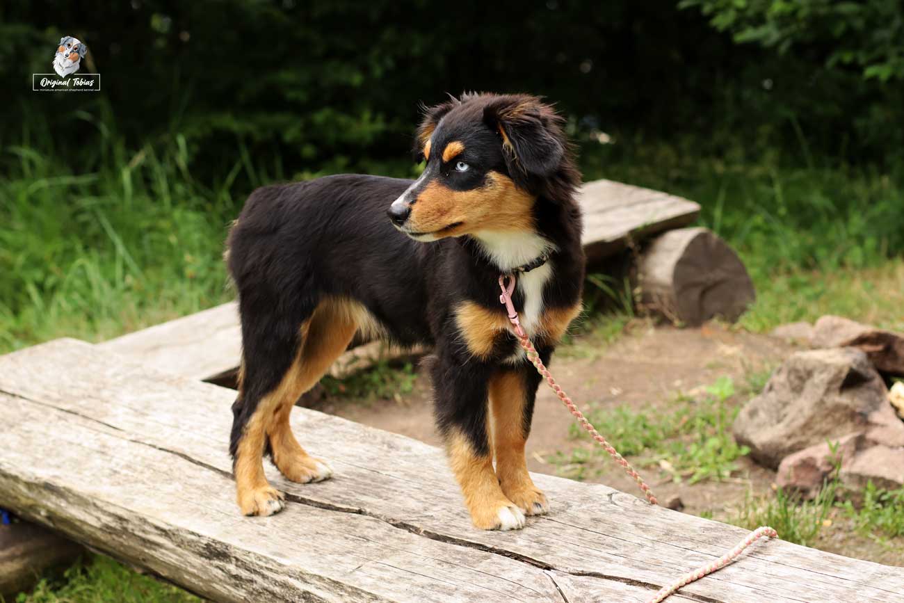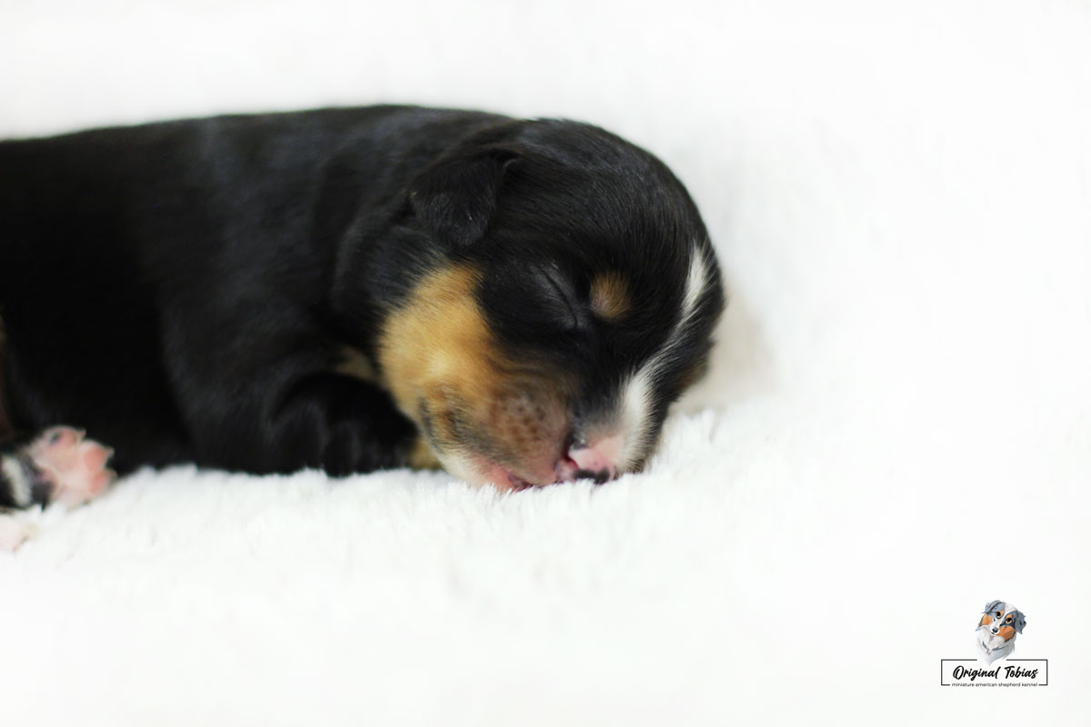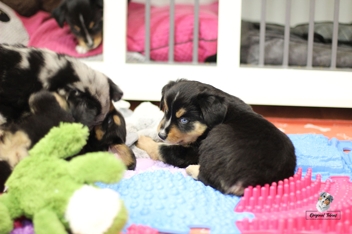 Abigail Original Tobias je black tri fenka, které jsme přiřadili fialovou barvičku. Abigail se narodila jako předposlední štěně s váhou 320 g, v čase 15:50 dne 16. 2. 2021.