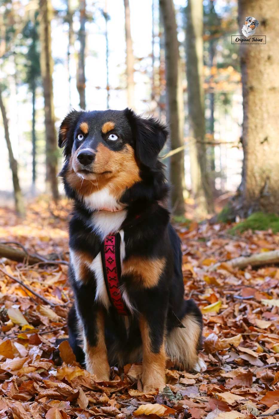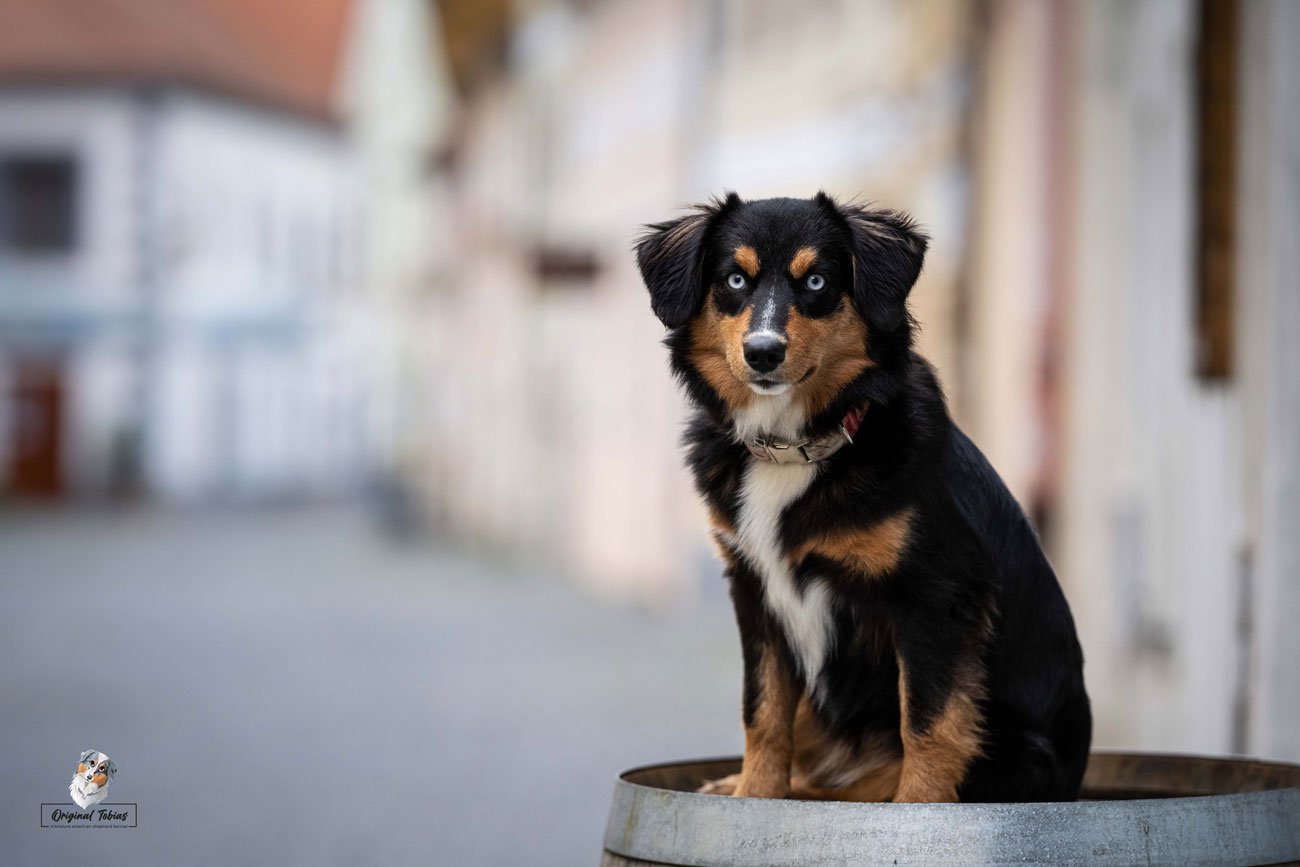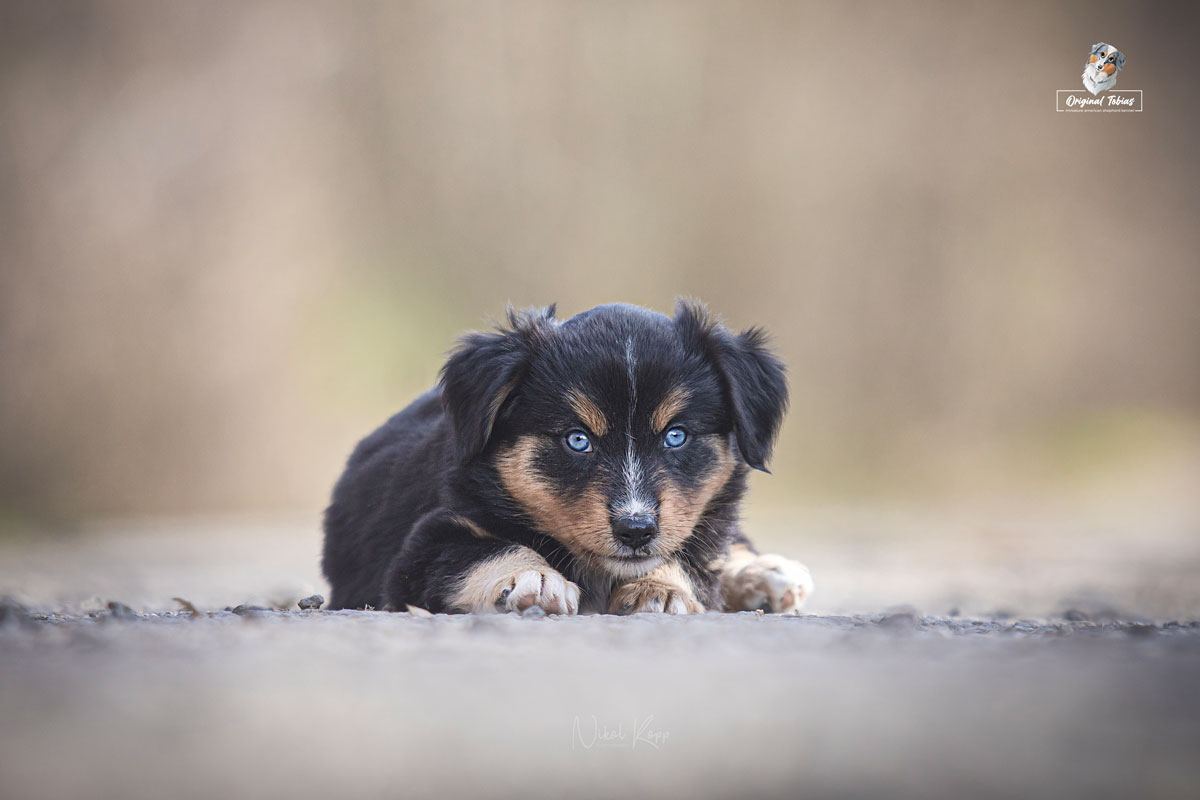 Jelikož je Abigail předposlední štěně, už docházela bílá barva. Proto má jen jemnou tenkou lysinku a bílé jen špičky prstíků. Abigail má jako jediná holčička obě oči modré. V kombinaci s její černou barvou bude mít krásný uhrančivý pohled.