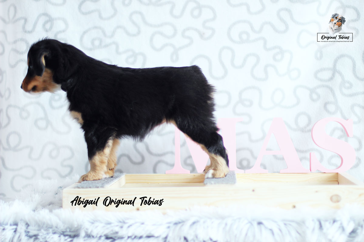 , naopak vše rychle chápe a jako první uměla oznámit, že chce vyvenčit. Abi jede do svého domova jako druhá a to ve věku 8,5 týdne. Bude žít poblíž Českých Budějovic a dělat radost nejen velkým, ale i menším páníčkům. Abi už má od svých majitelů naplánované velké věci jako pasení, agility a poslušnost. V novém domově ji navíc čeká celá psí smečka