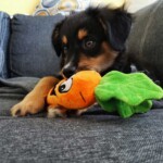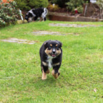 Ale zpět k Daisy, je to pořád stejný skřítek, stále je to nejdrobnější štěně z vrhu, jen je mnohem větší rarášek než byla jako miminko, ale to se začalo projevovat už u nás, kdy jí stále rostl hřebínek. Je to malá podšívka, akční, ale hodná. Akčnost však plně využije jen když má, na tréninku nebo při venčení, doma je naopak hodná a v klidu odpočívá bez vyžadování pozornosti. Daří se jí vše, co si na ni majitelka vymyslí. Dělá obedience i agility a brzy ji čeká první lekce pasení.