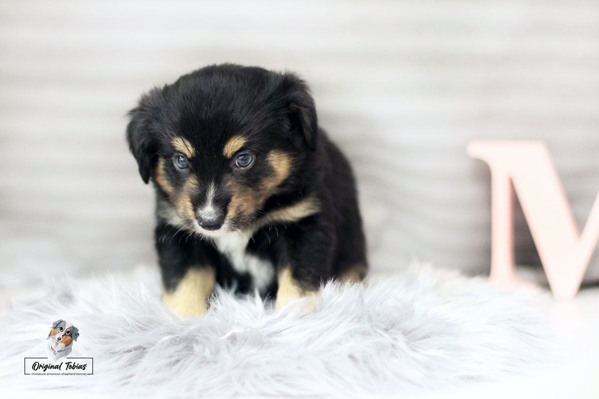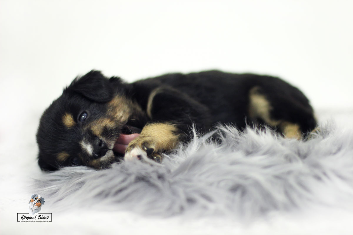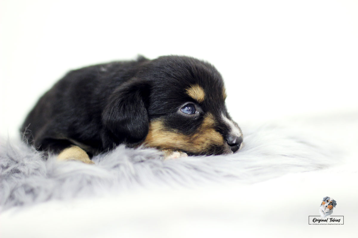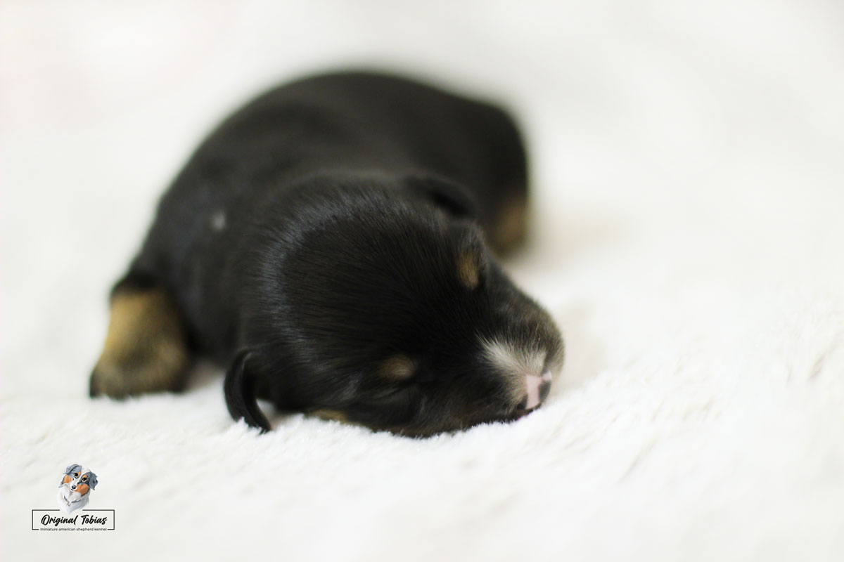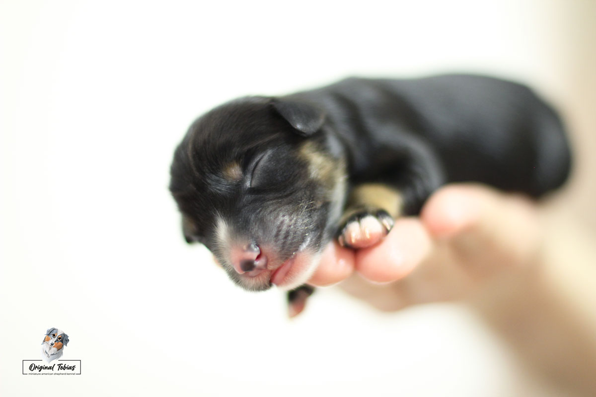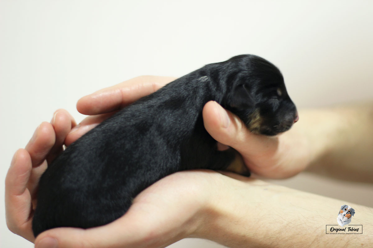 Amazing Daisy Original Tobias je black tri fenka, které jsme přiřadili růžovou barvičku. Daisy se narodila jako poslední a nejmenší štěně s váhou 255 g, v čase 16:55 dne 16. 2. 2021.