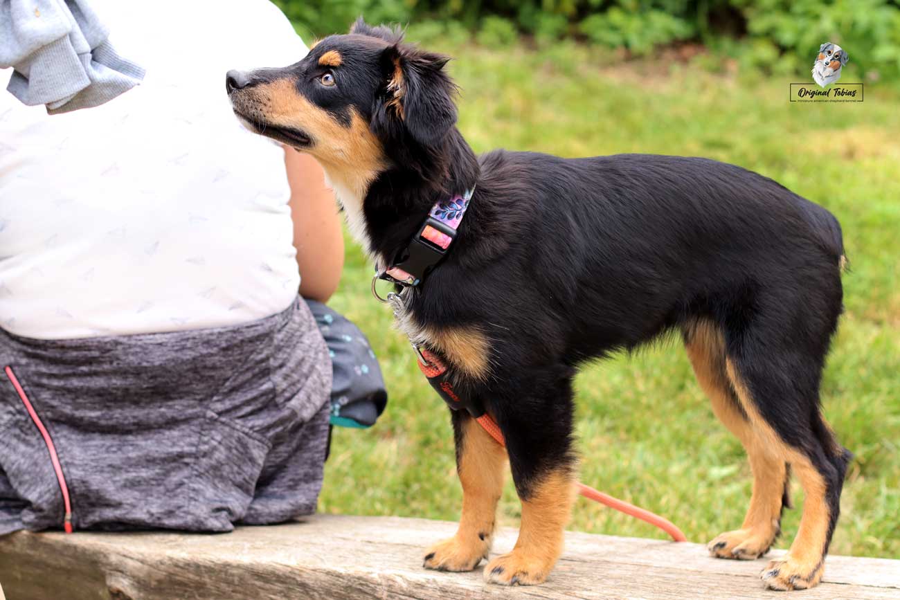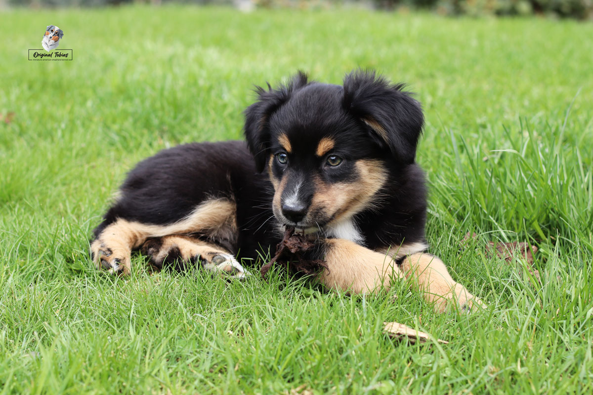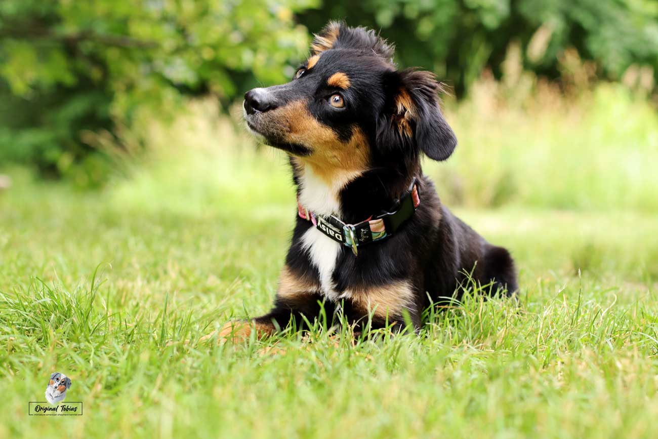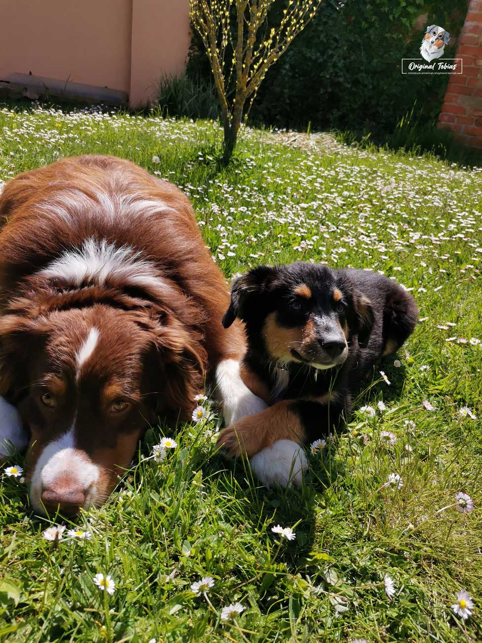 Ale zpět k Daisy, je to pořád stejný skřítek, stále je to nejdrobnější štěně z vrhu, jen je mnohem větší rarášek než byla jako miminko, ale to se začalo projevovat už u nás, kdy jí stále rostl hřebínek. Je to malá podšívka, akční, ale hodná. Akčnost však plně využije jen když má, na tréninku nebo při venčení, doma je naopak hodná a v klidu odpočívá bez vyžadování pozornosti. Daří se jí vše, co si na ni majitelka vymyslí. Dělá obedience i agility a brzy ji čeká první lekce pasení.