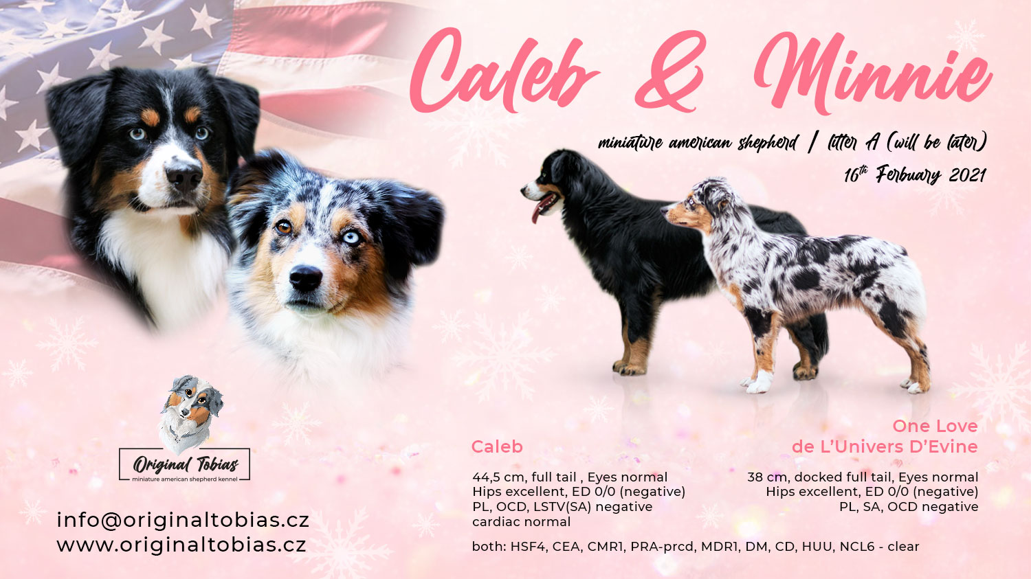 16. 2. 2021 se po dlouhých 4 letech, od založení chovatelské stanice, narodil náš první vrh. Narodilo se nám celkem 5 miminek, z toho 3 holčičky (všechny black tri) a dva kluci (blue merle a black tri). Rodiči se stali naše Minnie a Caleb, pes dovezený z Texasu, žijící však v Německu. Více informací o obou rodičích naleznete níže.